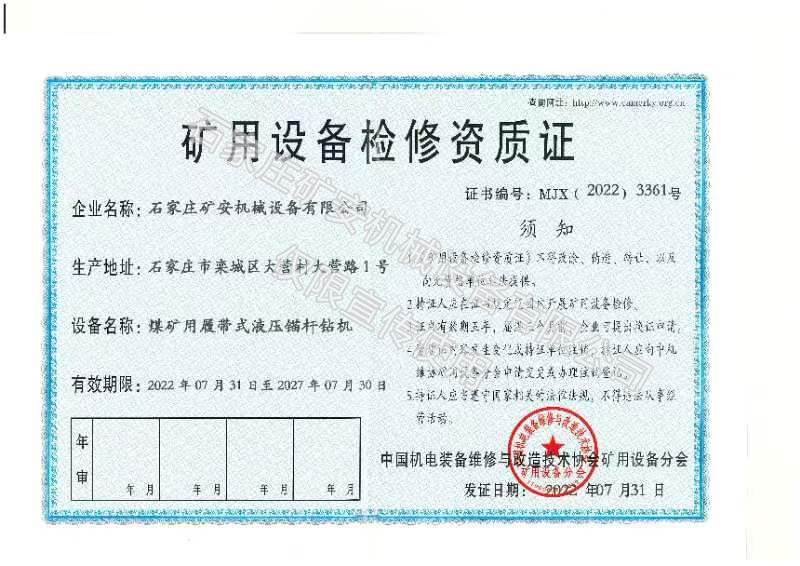 石家莊礦安機(jī)械設(shè)備有限公司成立于2011年3月,公司位于風(fēng)景優(yōu)美、科技發(fā)達(dá)、交通便利的石家莊市欒城區(qū),是一家專注生產(chǎn)煤礦井下支護(hù)機(jī)具(錨桿鉆機(jī))和安全鉆機(jī)(防突,架柱等)及氣動隔膜泵等礦用機(jī)械設(shè)備的********,是國內(nèi)煤礦機(jī)械裝備的生產(chǎn)商和服務(wù)商,根據(jù)用戶需求提供井下適用的鉆機(jī)施工解決方案。公司致力于打造研發(fā)、制造、銷售、服務(wù)為一體的現(xiàn)代化企業(yè),全心全意為煤礦生產(chǎn)保駕護(hù)航。 ? 公司建有裝配車間、機(jī)加車間和調(diào)試車間,擁有嚴(yán)格的質(zhì)量控制體系、先進(jìn)的產(chǎn)品開發(fā)系統(tǒng)、完善的試驗(yàn)檢測設(shè)施、良好的售后服務(wù)保障。先后與中煤科工集團(tuán)沈陽研究院、西安研究院、太原理工大學(xué)、燕山大學(xué)等知名院校建立了緊密的合作關(guān)系。 ? 公司產(chǎn)品主要銷往山西、陜西、山東、內(nèi)蒙古、黑龍江、云南、貴州等七十多個(gè)礦區(qū)和地方煤礦,擁有一支成熟的售后技術(shù)團(tuán)隊(duì),并且和中煤集團(tuán)、華電煤業(yè)集團(tuán)、華潤煤業(yè)集團(tuán)、潞安集團(tuán)、山西焦煤、淮北礦業(yè)等國內(nèi)知名企業(yè)達(dá)成長期合作關(guān)系。 ? 公司始終秉持“讓煤礦生產(chǎn)更安全”的發(fā)展使命,力求誠信與創(chuàng)新,追求卓越與完美,深知“實(shí)實(shí)在在、心無旁騖做實(shí)業(yè)”,這才是本分!石家莊礦安機(jī)械設(shè)備有限公司愿與您攜手共進(jìn),共同發(fā)展!為客戶創(chuàng)造價(jià)值,提供優(yōu)質(zhì)的產(chǎn)品和*佳的服務(wù)是我們永無止境的理念!